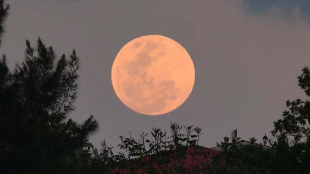 Luna Llena Rosa acompañada en el cielo por una gran estrella