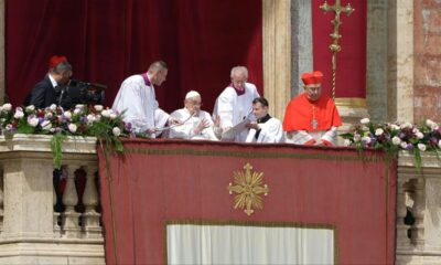El papa Francisco, todavía convaleciente de una neumonía, apareció este domingo en el balcón de la basílica de San Pedro del Vaticano y con una débil voz...