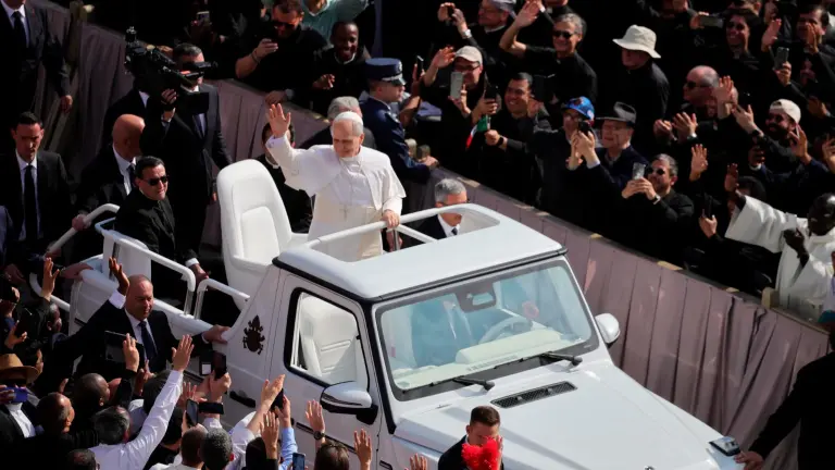 El papa León XIV recorrió por primera vez la plaza de San Pedro en el papamóvil