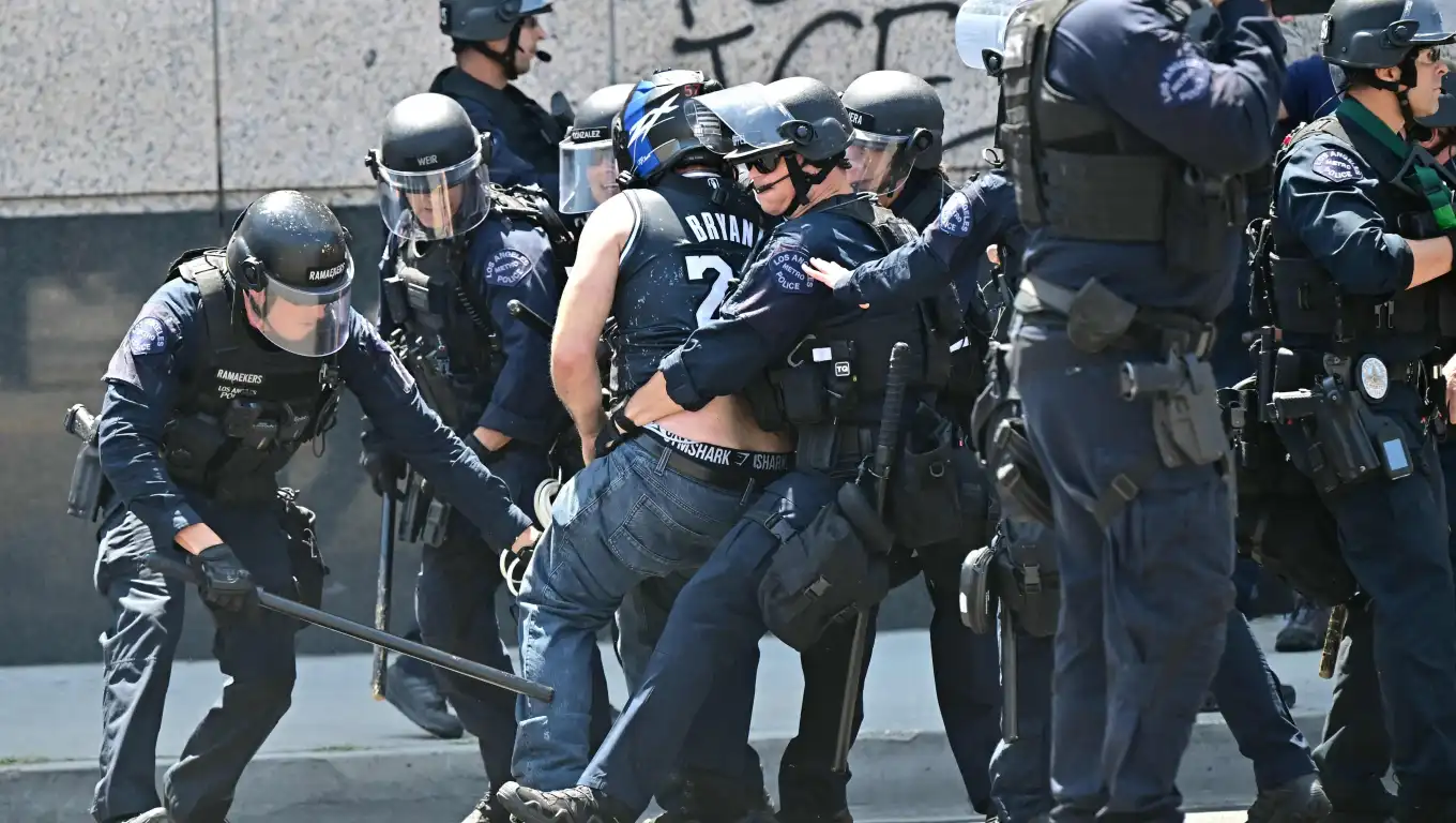 En Los Ángeles, oficiales de la policía establecieron un perímetro para resguardar edificios federales y evitar contacto entre manifestantes violentos y la Guardia Nacional.