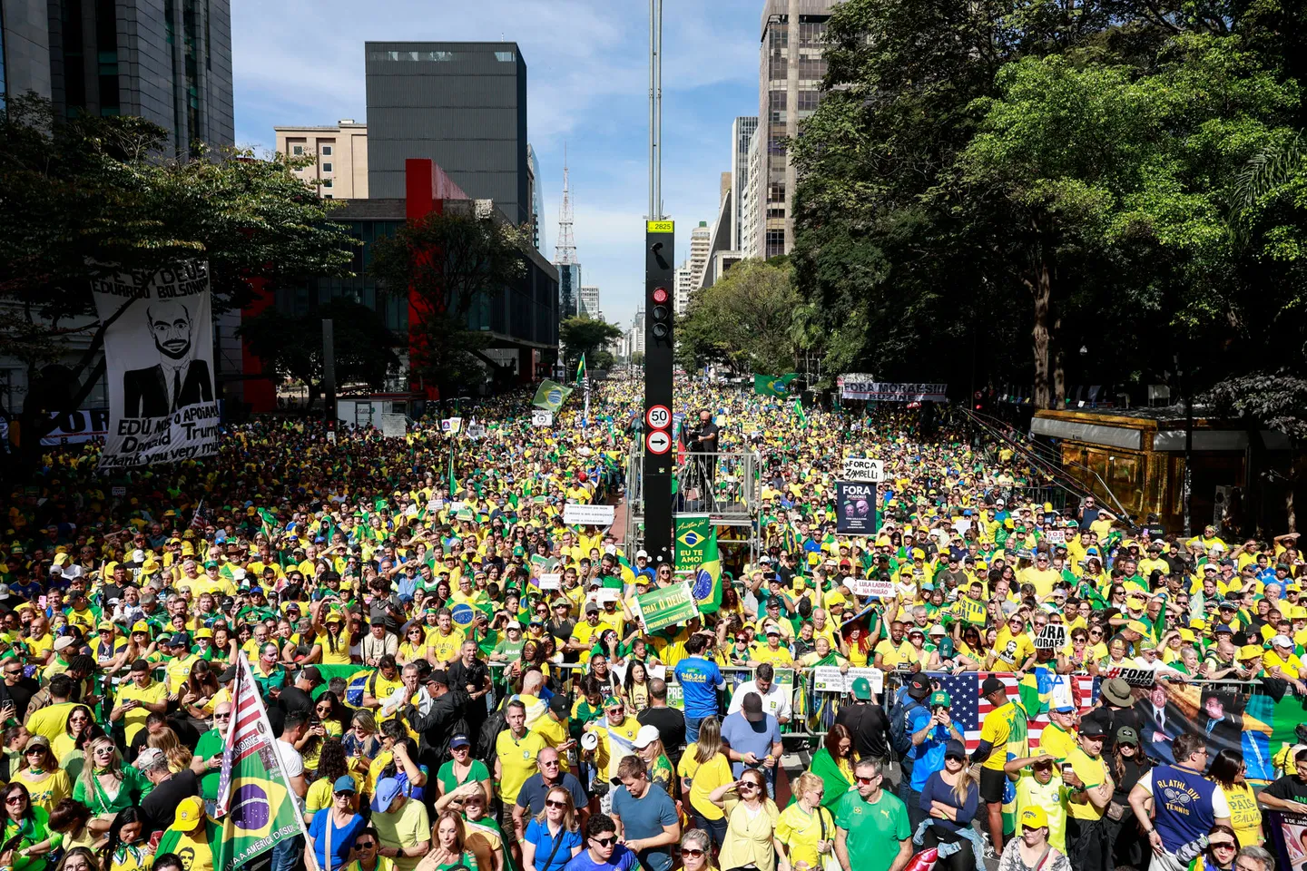 Sus simpatizantes también se reunieron en Sao Paulo, que ha sido foco de otras manifestaciones bolsonaristas en la avenida Paulista. Varios sostuvieron pancartas pro-Trump, después de que días atrás, en la misma ciudad, seguidores de lula protestaran contra el mandatario estadounidense por los aranceles.