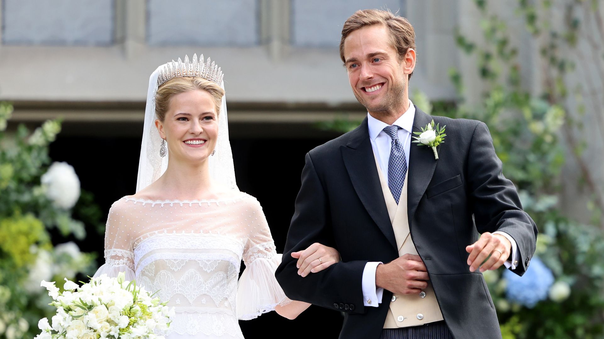 La boda se celebró en la Catedral de San Florín de Vaduz, en una ceremonia privada. El novio llegó acompañado por su madre, Sofía Maduro Vollmer. El acceso a la iglesia fue decorado con una alfombra azul oscuro, flanqueada por hortensias en tonos a juego.