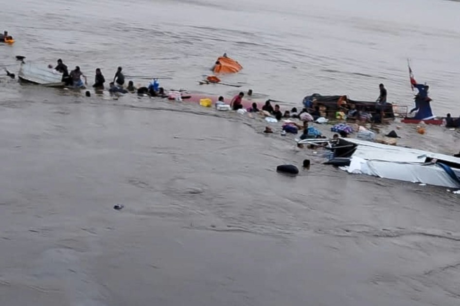 De acuerdo con información de la Policía, citada por la agencia estatal Andina, el derrumbe «arrastró y hundió» a dos embarcaciones de pasajeros que estaban estacionadas a orillas del río.